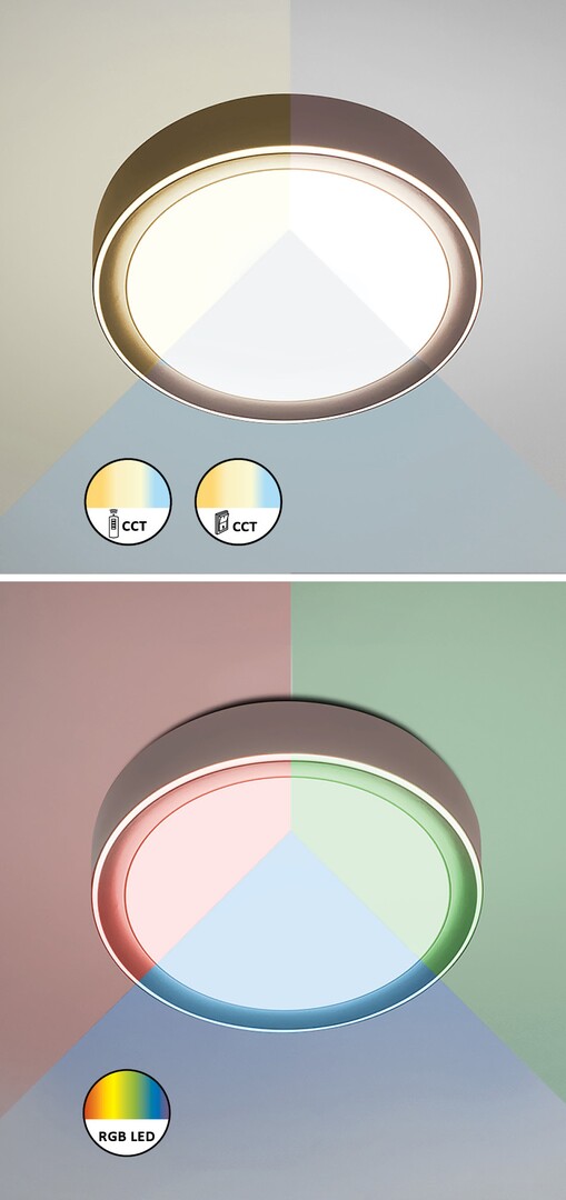 Wykonana w brązowo-białej kolorystyce okrągła lampa sufitowa Mokka będzie doskonałym wyborem do Twojego nowoczesnego salonu, sypialni lub gabinetu. Ten minimalistyczny model zachwyci użytkownika wieloma przydatnymi funkcjami. Metalowa oprawa uzupełniona jest akrylowym kloszem, a lampa posiada wbudowane źródło światła LED. Inteligentna żarówka ma moc 24W, strumień świetlny 2000 lumenów oraz żywotność 30 000 godzin. Lampa sufitowa może być przyciemniana, co oznacza, że jej jasność może być zmieniana za pomocą pilota wedle upodobań; również jej temperatura barwowa może być regulowana w zakresie 3000-6000K przy użyciu przełącznika ściennego lub pilota. Możesz również ustawić oświetlenie RGB, co oznacza, że możesz zmieniać kolor światła. Dodatki obejmują ponadto funkcję pamięci, którą można sterować za pomocą pilota lub przełącznika ściennego, a także funkcję timera i światła nocnego. Średnica lampy sufitowej Mokka wynosi 410mm, a jej odległość od sufitu to 100mm.