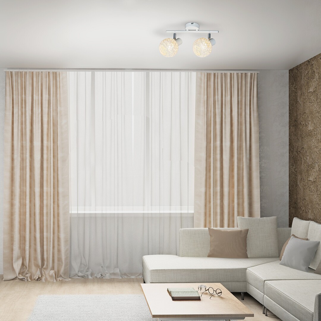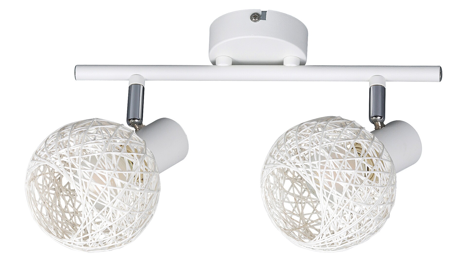 Podwójne oświetlenie punktowe Hazel wykonane w nordyckim stylu będzie ze swoim wesołym wyglądem świeżym akcentem w Twoim domu. Matowa biała oprawa uzupełniona jest okrągłymi papierowymi abażurami w jasnej kolorystyce co sprawia, że lampa Hazel jest doskonałym dodatkiem do wnętrz zarówno w pastelowych, jak i w żywych kolorach. Możesz zamontować ją w salonie, sypialni lub w korytarzu. Lampa sufitowa może być używana jedynie z dwoma energooszczędnymi źródłami światła o maksymalnej mocy do 15 W każde, typ gwintu: E14. Jeśli chcesz stworzyć przyjemną, intymną atmosferę, użyj źródeł emitujących ciepłe, białe światło. Całkowita szerokość lampy wynosi 295 mm. Podwójne oświetlenie punktowe Hazel dostarczane jest bez źródeł światła.