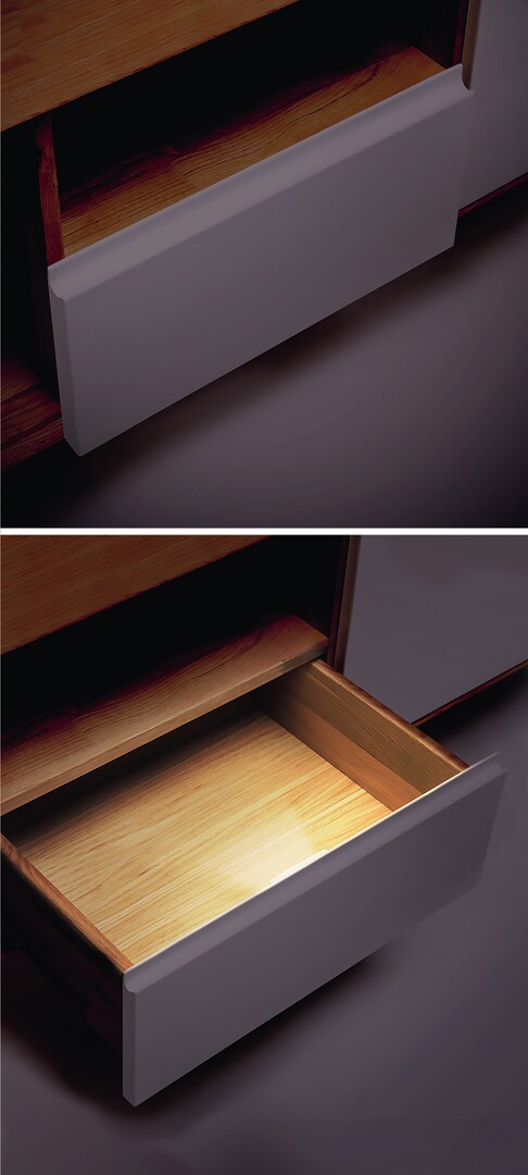 Oświetlenie do szuflad i szafek Magnus jest prostym i doskonałym rozwiązaniem do oświetlania ciemnych miejsc. Może być, na przykład, zainstalowane w szafie kuchennej, szafie na ubrania, szafce na buty lub regale na książki. Magnus działa na zasadzie indukcji magnetycznej i składa się z dwóch części: światła LED z wyłącznikiem magnetycznym oraz magnesu. Oba elementy należy montować na dwóch różnych powierzchniach szuflady lub drzwiczek szafki, tak aby po zamknięciu znajdowały się w określonej odległości od siebie. Po wysunięciu szuflady lub otwarciu drzwiczek światło włącza się, a po zamknięciu ich zostaje ono wyłączone. Moc wbudowanego źródła światła LED wynosi 0,5 W, jego natężenie to 35 lumenów, a temperatura barwowa – 3000 K. Żarówka emitującą ciepłe białe światło ma żywotność 30 000 godzin. Wymiary tej lampy to 65x43x15 mm, a rozmiar części magnetycznej to 45x17x8 mm. Oświetlenie szuflady i szafki wykonane z tworzywa sztucznego potrzebuje 4 baterii AAA. Baterie nie są wchodzą w skład zestawu. Zawartość opakowania: 2 lampy, 2 magnesy, 4 taśmy dwustronne.