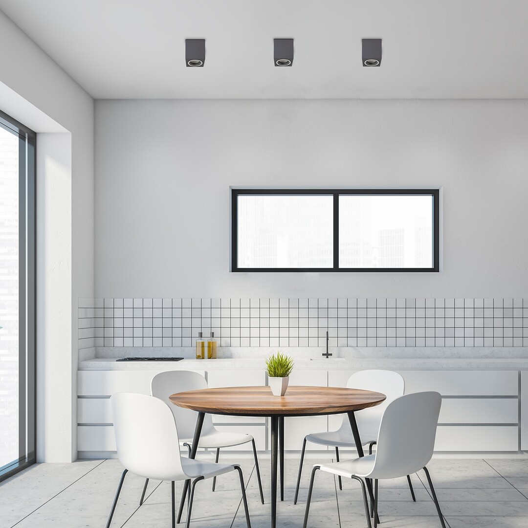 Wykonana w stylu nowoczesnym oprawa sufitowa Kobald dzięki wyrazistemu i przejrzystemu wyglądowi jest doskonałym wyborem do salonu, jadalni, kuchni lub gabinetu. Ze względu na niewielkie rozmiary można zamontować kilka takich opraw w jednym pomieszczeniu. Wykonana z aluminium oprawa w kolorze szarym jest uzupełniona białym kloszem akrylowym. Do świecącej w dół oprawy można zastosować źródło światła z trzonkiem GU10, o mocy max. 25 W. W zależności od upodobań i miejsca instalacji do oprawy można wybrać źródło światła o ciepłej lub naturalnej barwie. Jeśli ta oprawa zostanie zamontowana w często uczęszczanym pomieszczeniu w domu - na przykład w salonie lub kuchni - warto użyć do niej źródła światła o naturalnej barwie, aby stworzyć nowoczesny, klarowny efekt. Ta barwa światła jest idealna również do pracy, ponieważ pomaga zachować koncentrację. Wymiary oprawy sufitowej wynoszą 80x80 mm, a odległość od sufitu 100 mm. Oprawa Kobald jest dostarczana bez źródła światła.