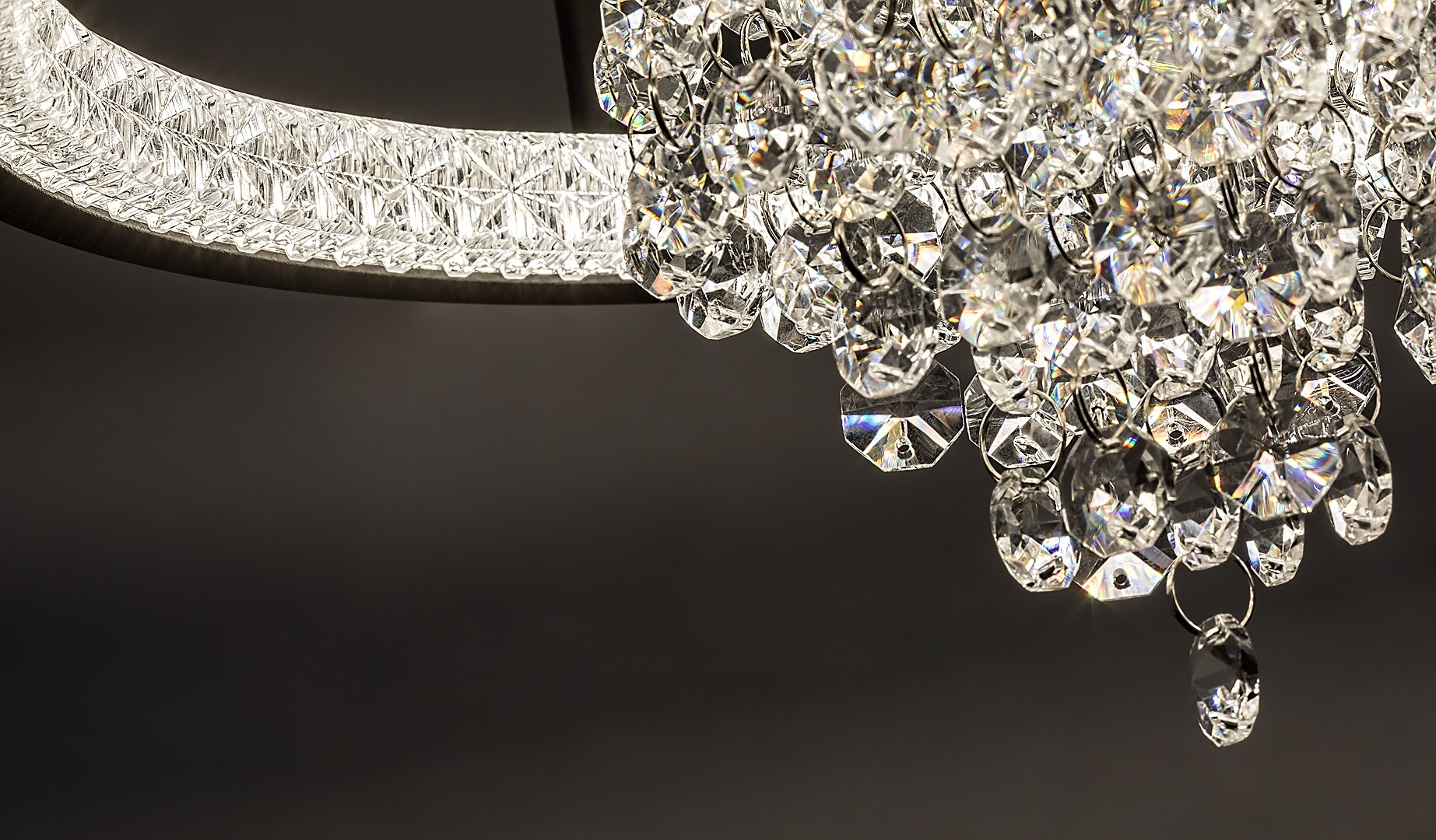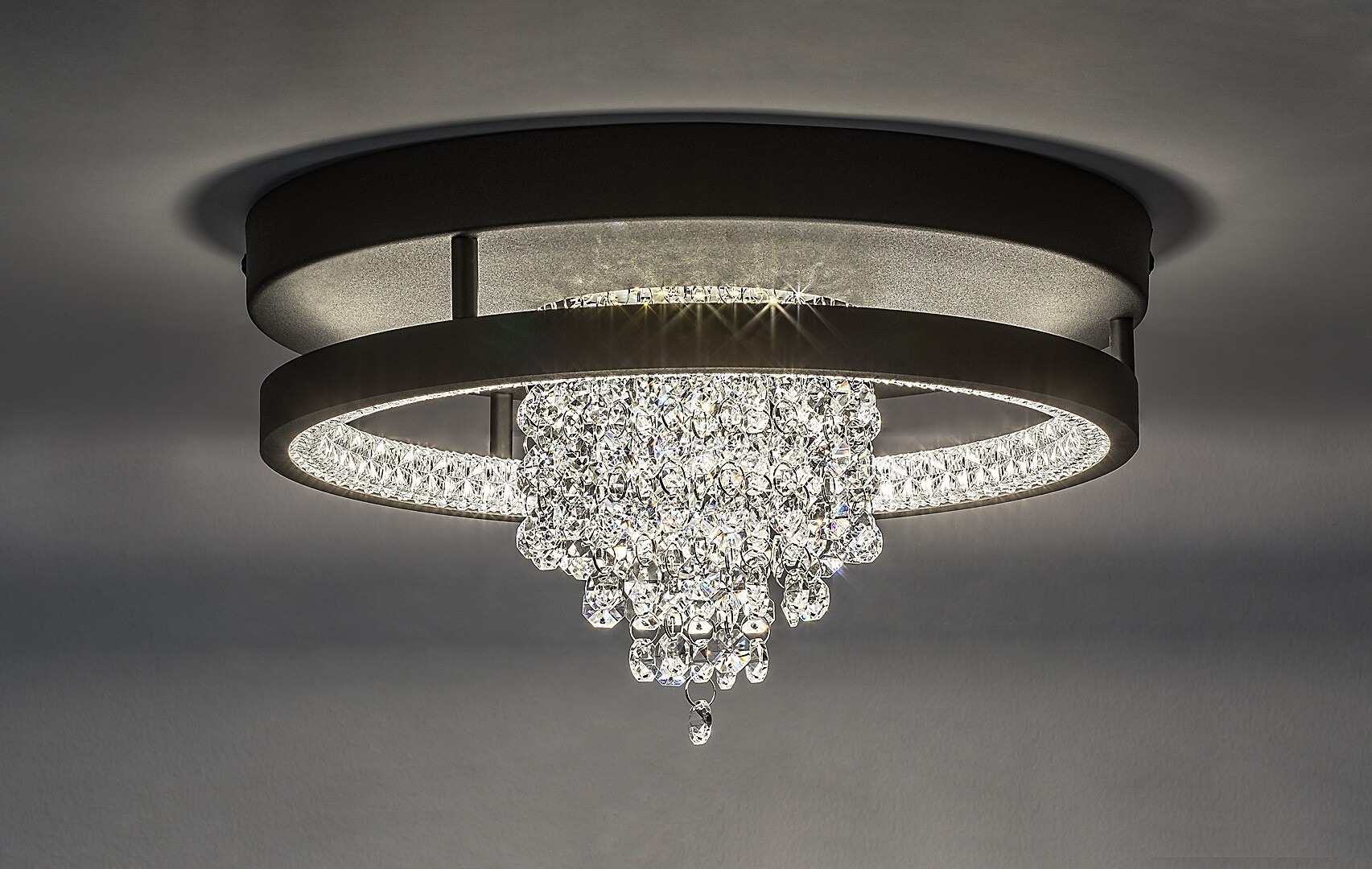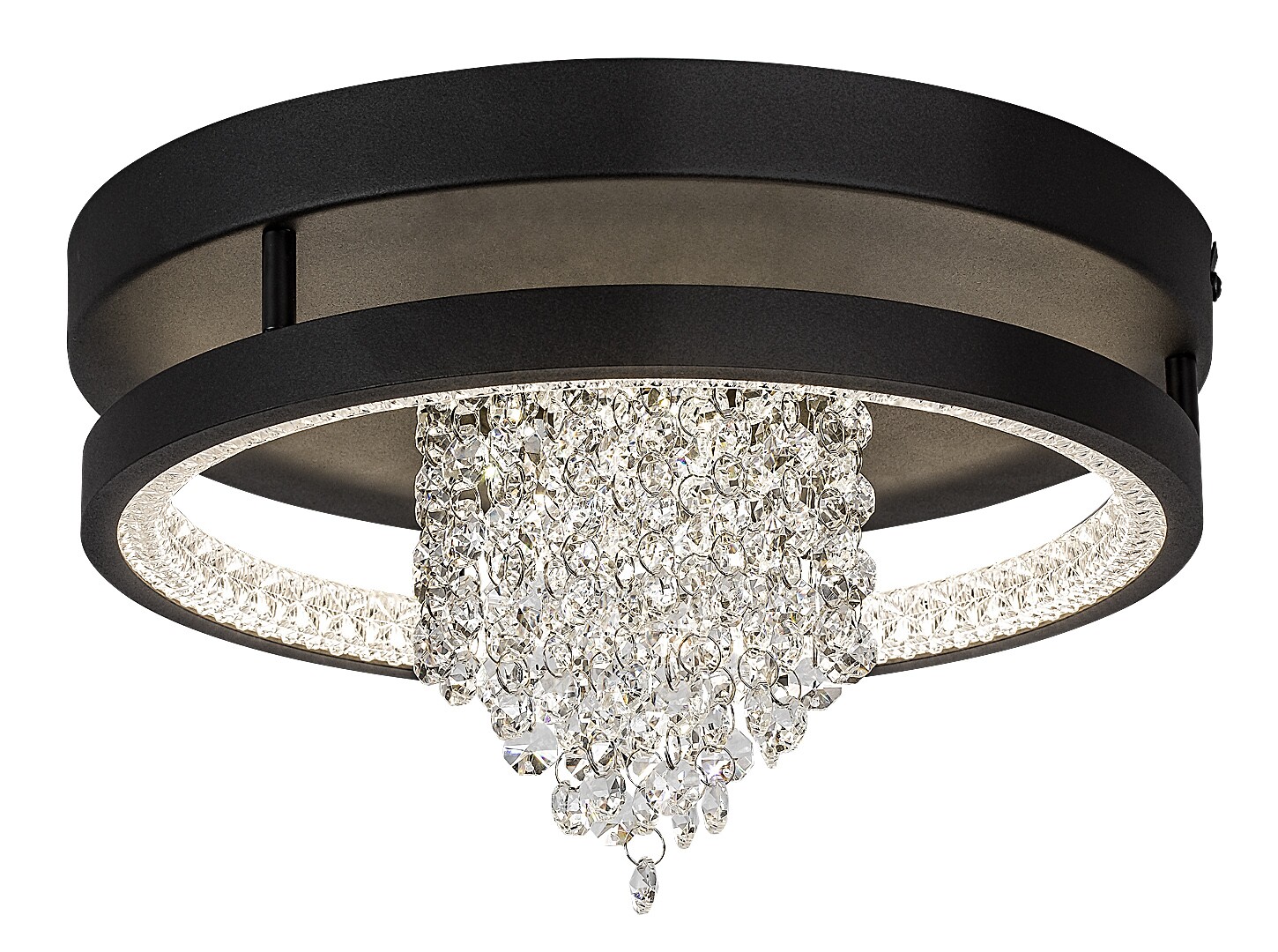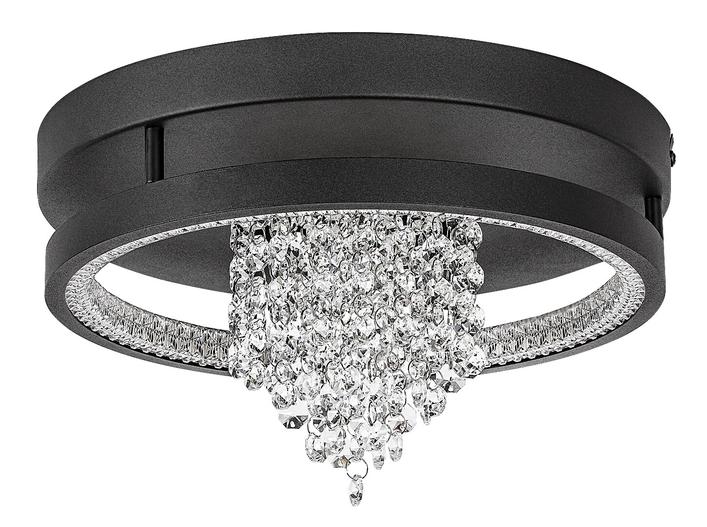 Lampa sufitowa Rabalux Maribell polecana jest osobom poszukującym lampy LED z efektem żyrandola, ale o nowoczesnym wyglądzie. Ten elegancki, połyskujący model doskonale sprawdzi się w salonie, jadalni lub sypialni. Oprawa ma okrągły kształt, jest czarna, wykonana z metalu i uzupełniona kloszem z przezroczystych kryształków szklanych. Klosz biegnie wokół wewnętrznej krawędzi lampy, a ze środka zwisa skupisko pasm kryształowych. Ten piękny żyrandol posiada wbudowane źródło światła LED z przełącznikiem DIP do regulacji temperatury barwowej w trzech wariantach: można wybrać ciepłe lub naturalne białe światło. Technologia LED zapewnia lampie sufitowej energooszczędne działanie i długą żywotność.