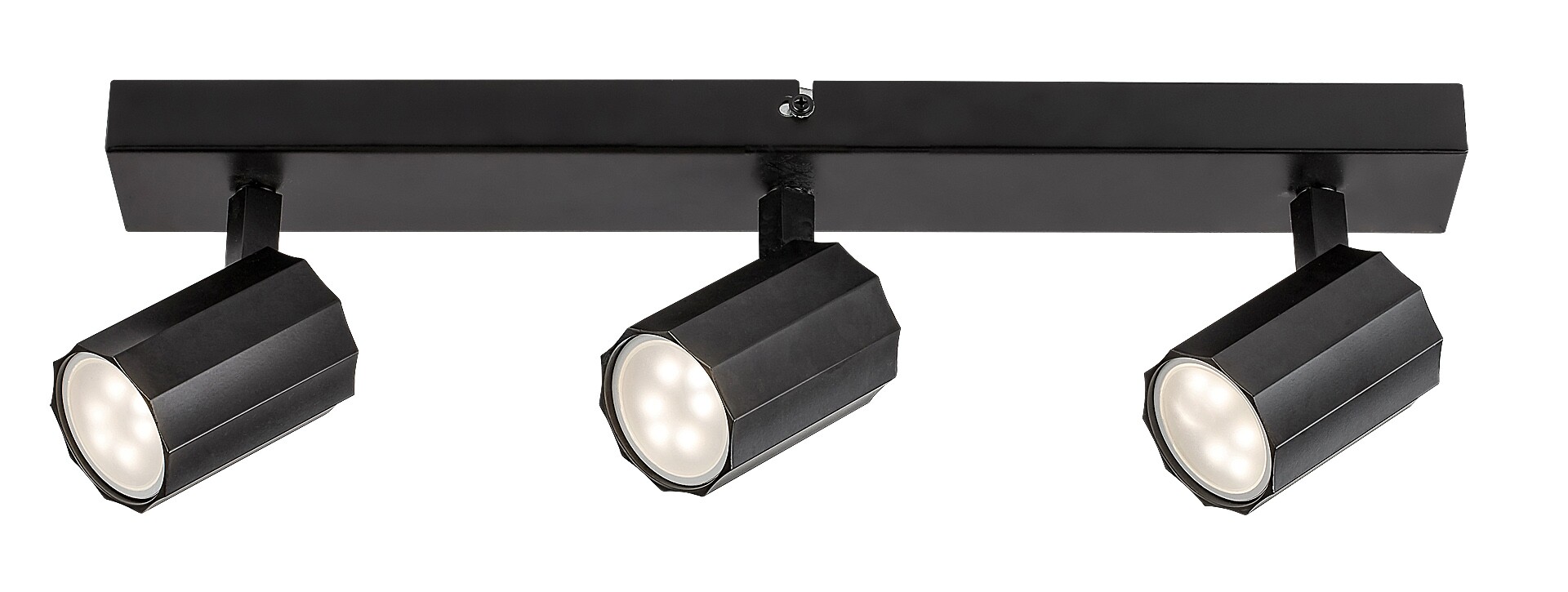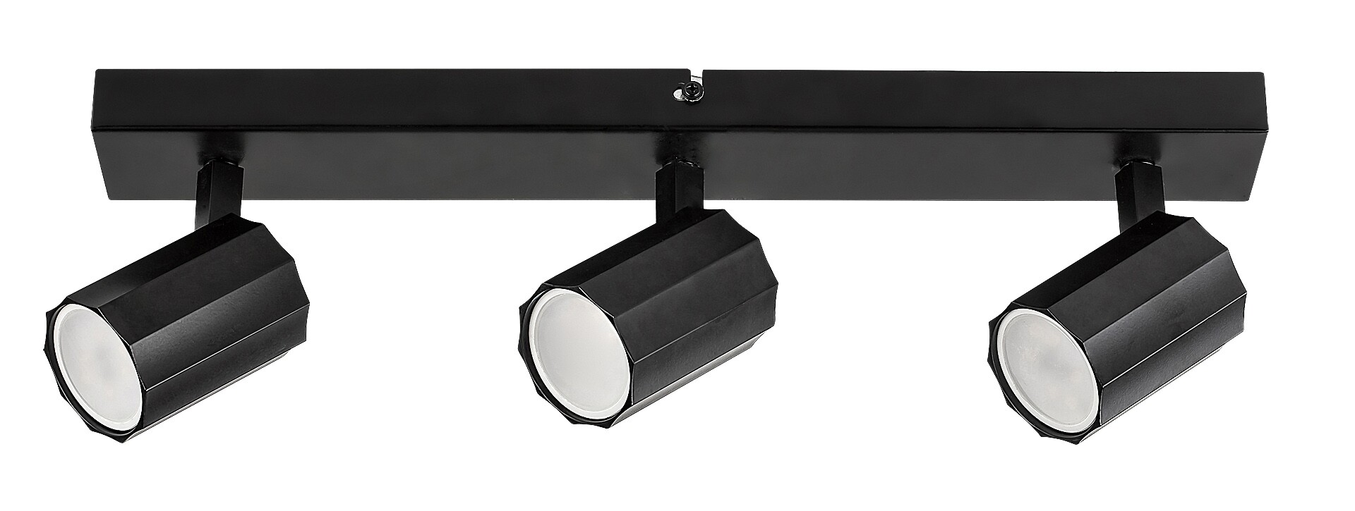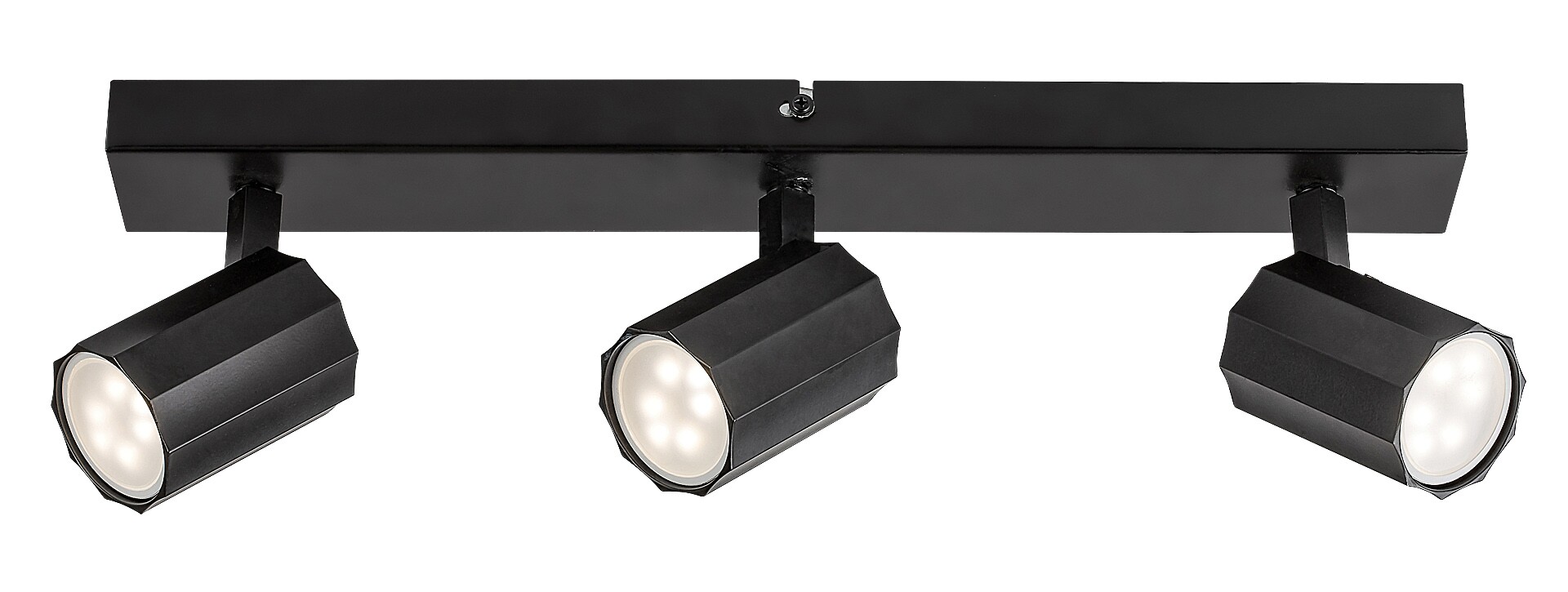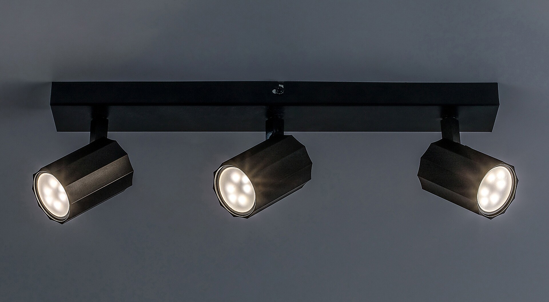 Wykonana w nowoczesnym stylu oprawa sufitowa Rogelio z trzema punktami świetlnymi jest praktycznym wyborem zarówno do salonu, jak i do sypialni lub gabinetu. Wykonana z metalu oprawa w kolorze czarnym matowym jest uzupełniona cylindrycznymi kloszami w tym samym kolorze i może być przymocowana do sufitu za pomocą podłużnej, prostokątnej podstawy dekoracyjnej. Dzięki regulowanym głowicom użytkownik może skierować światło w wybraną stronę, co umożliwia skuteczne oświetlenie pomieszczenia. Do oprawy Rogelio można zastosować trzy źródła światła z trzonkiem GU10, każde o mocy max. 5 W. Jeśli oprawa ma zostać zamontowana w salonie lub w gabinecie, polecamy zastosowanie źródeł światła o naturalnej barwie, które tworzy nowoczesny, czysty efekt i wspomaga skuteczne wykonywanie pracy. Wymiary oprawy sufitowej Rogelio z trzema punktami świetlnymi są następujące: szerokość 430 mm, średnica poszczególnych kloszy 50 mm, odległość od sufitu 125 mm. Produkt ten jest dostarczany bez źródła światła.