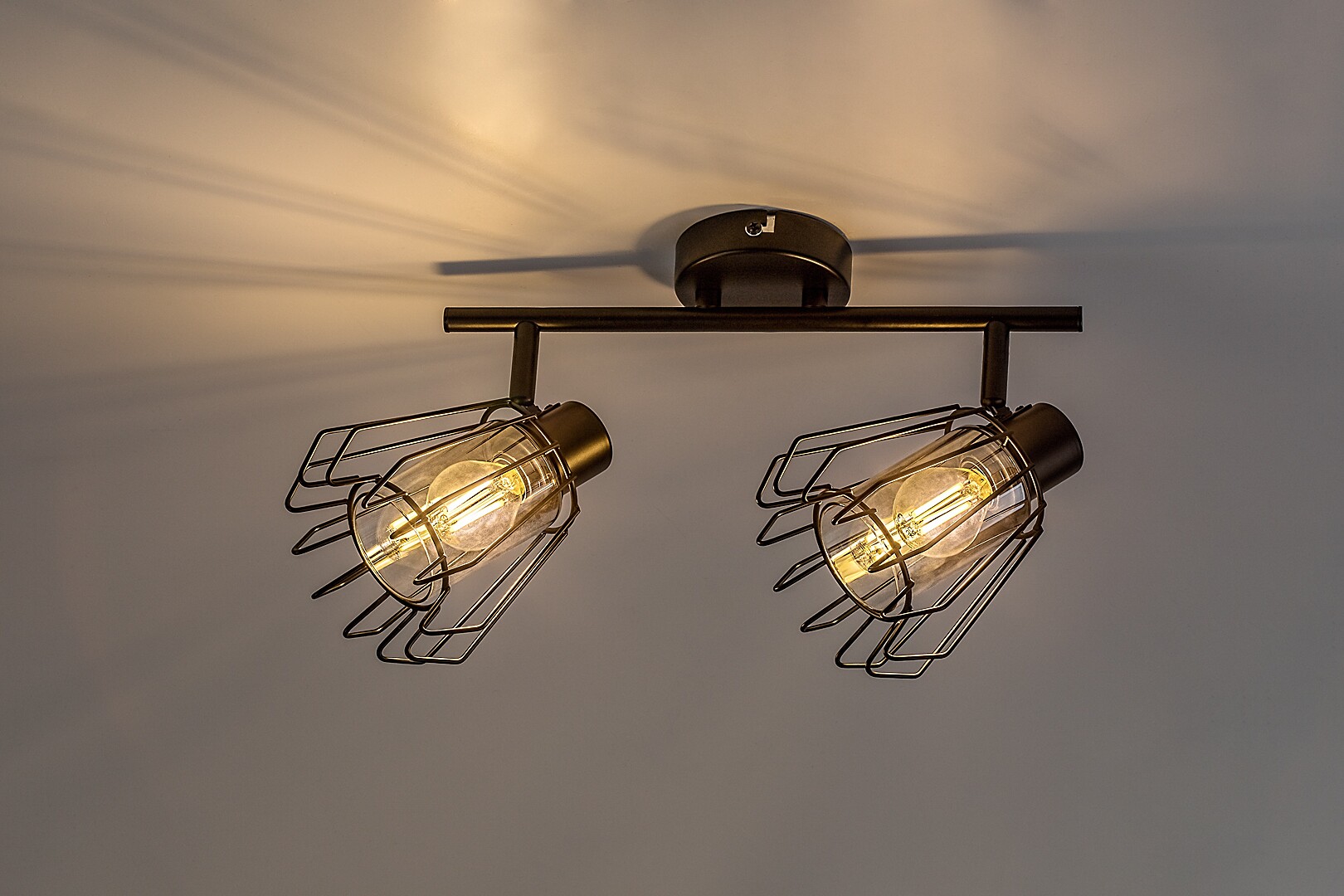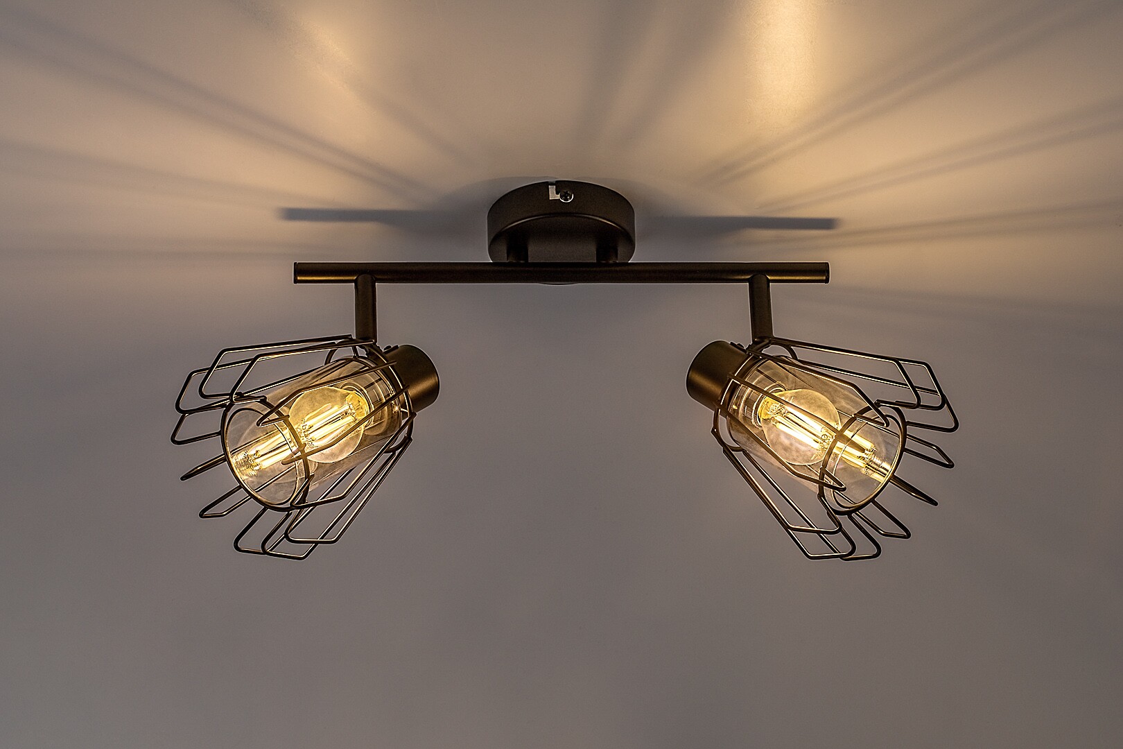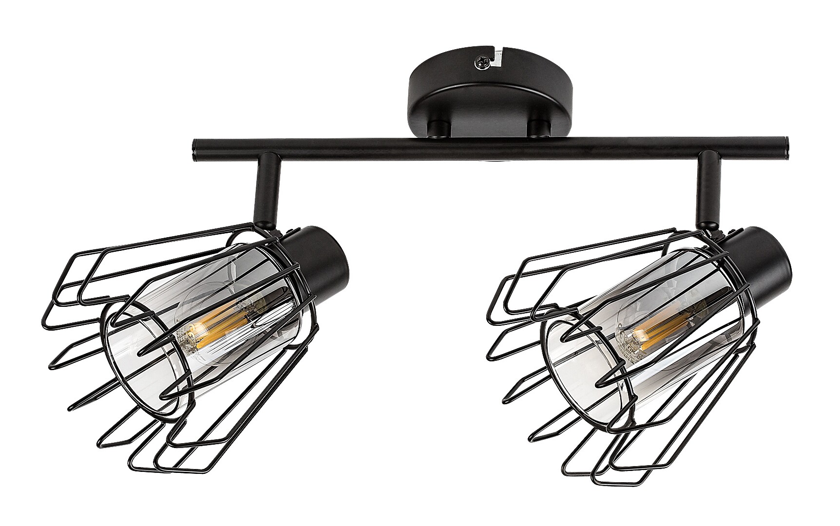 Lampa sufitowa Rabalux Emerencia z dwoma żarówkami jest polecana dla osób, które lubią lampy o unikalnym wyglądzie w stylu industrialnym. Ten model charakteryzuje się kloszami z metalowych prętów i jest wykonany z metalu w kolorze czarnym. Wewnątrz głowic lamp znajdują się cylindryczne klosze z dymionego szkła, otoczone zewnętrznymi kloszami w kształcie litery A z prętów. Lampę można zamontować na suficie za pomocą małej, okrągłej, dekoracyjnej podstawy, do której przymocowany jest cylindryczny pręt trzymający obie głowice lamp. Lampa sufitowa jest idealnym wyborem do salonu, kuchni, jadalni lub sypialni. Może być używana z dwoma źródłami światła, każde o mocy do 40 W. Typ gniazda to E14. Lampa punktowa jest wyposażona w praktyczne, elastyczne głowice lamp, dzięki czemu można skierować światło według potrzeby. Ten model jest dostarczany bez źródeł światła.