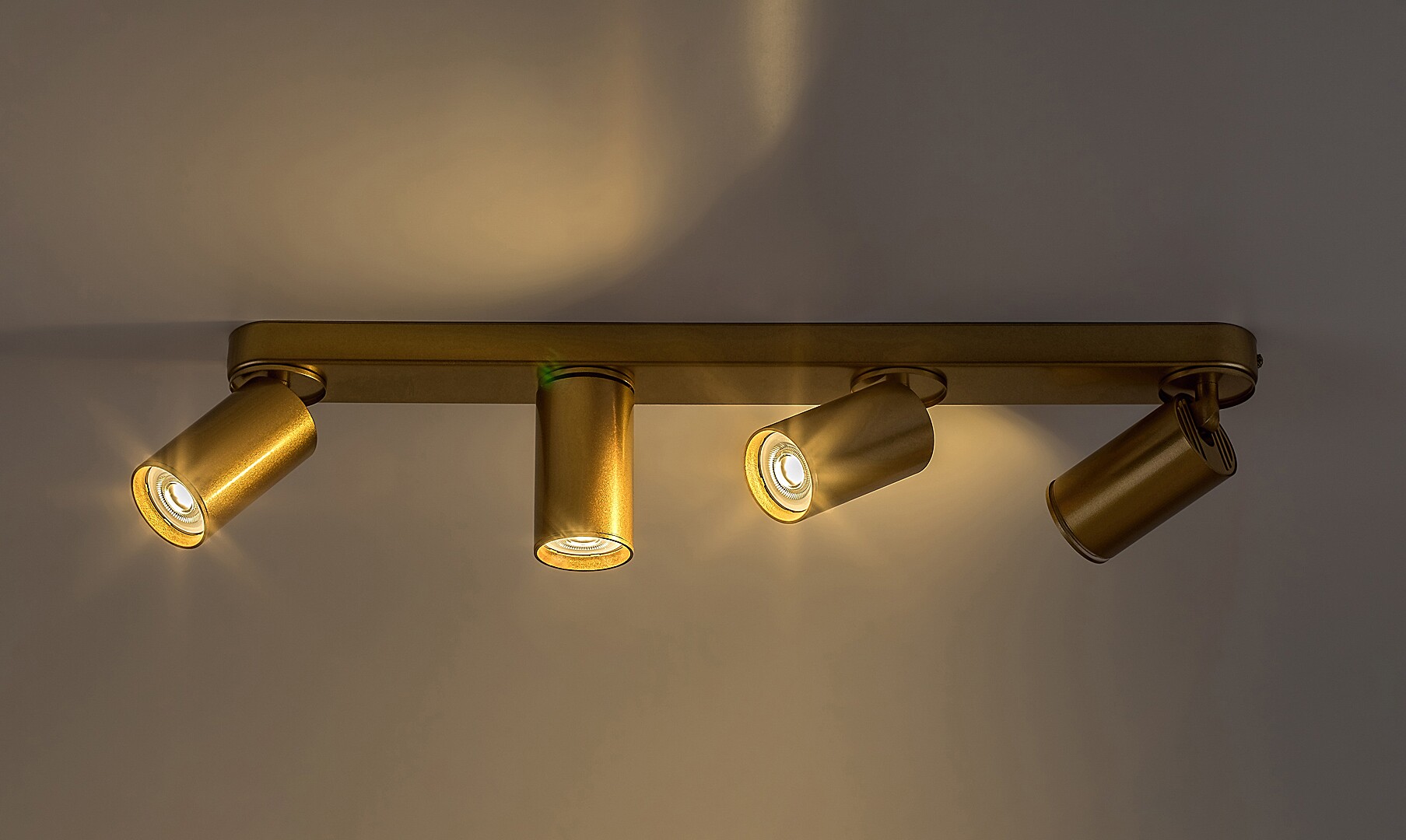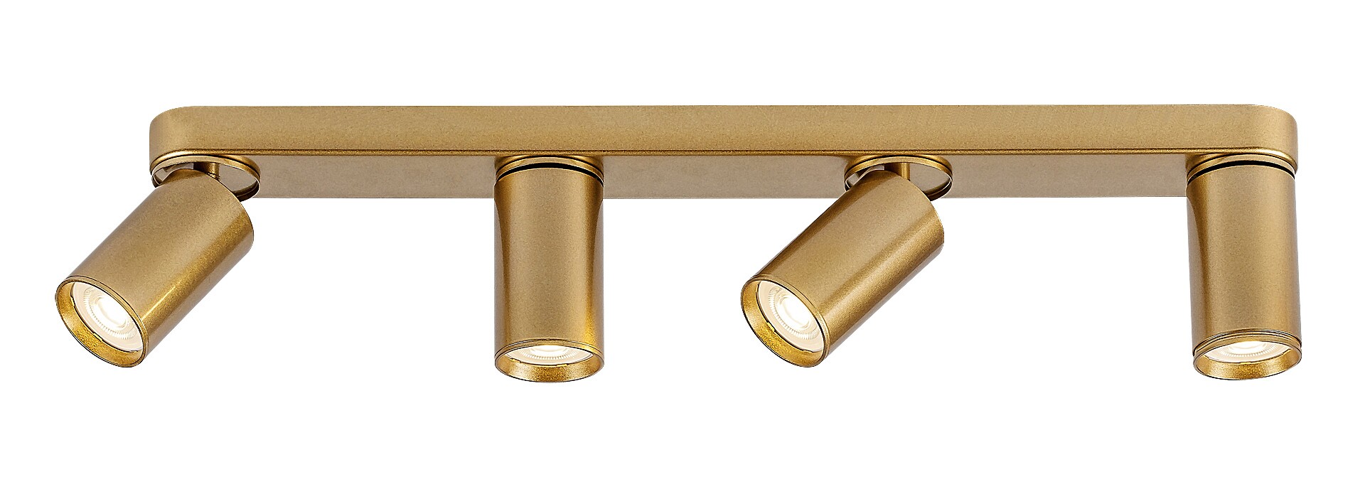 Lampa sufitowa Rabalux Mirina z czterema żarówkami jest idealnym wyborem dla osób, które szukają minimalistycznego, a zarazem eleganckiego modelu do bardziej przestronnych pomieszczeń w swoim domu. Lampa punktowa jest wykonana z metalu w błyszczącym złotym kolorze, z cylindrycznymi głowicami lamp i aluminiowymi kloszami. Można ją zamontować na suficie za pomocą długiej, dekoracyjnej podstawy z zaokrąglonymi końcami, na której głowice lamp są ułożone w rzędzie, obok siebie. Główki lamp są elastyczne, dzięki czemu można skierować światło w dowolnym kierunku, aby wygodnie oświetlić całe pomieszczenie. Ten model może być używany z czterema żarówkami, każda o mocy do 5 W. Typ gniazda to GU10. Lampa sufitowa jest idealnym wyborem do salonu, sypialni lub pracowni. Można wybrać żarówki emitujące ciepłe lub naturalne białe światło. Lampa sufitowa jest dostarczana bez źródeł światła.