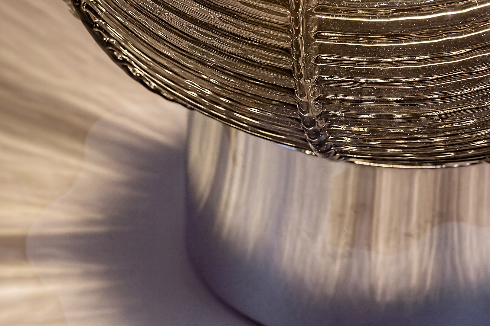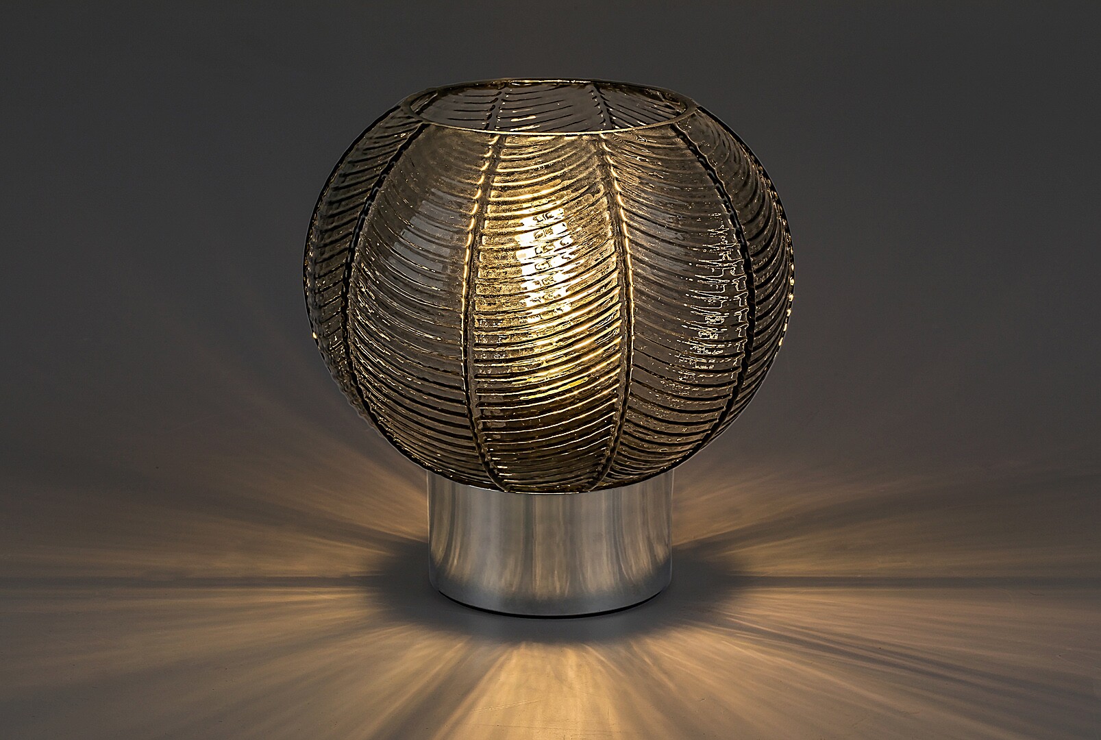Utrzymana w nowoczesnym stylu lampa stołowa Monet może stać się nastrojowym elementem wystroju prawie każdego salonu. Umieszczona na niższym stoliku lub półce lampa może stworzyć przyjemną, kameralną atmosferę. Wykonana z metalu okrągła podstawa w kolorze chromowym utrzymuje otwarty na górze, kulisty klosz szklany. Klosz z barwionego szkła posiada marmurową powierzchnię, dzięki której światło emitowane przez źródło stwarza wyjątkowy efekt świetlny. Do lampy Monet można zastosować źródło światła z trzonkiem E27 o mocy max. 40 W. Do tego modelu najlepiej zastosować źródło światła o ciepłobiałej barwie, które wspomoże odpoczynek w wieczornych godzinach i stworzy w pomieszczeniu przytulną, domową atmosferę. Wymiary lampy biurkowej Monet są następujące: szerokość 250 mm, średnica 190 mm, długość przewodu 1200 mm. Model ten jest dostarczany bez źródła światła.