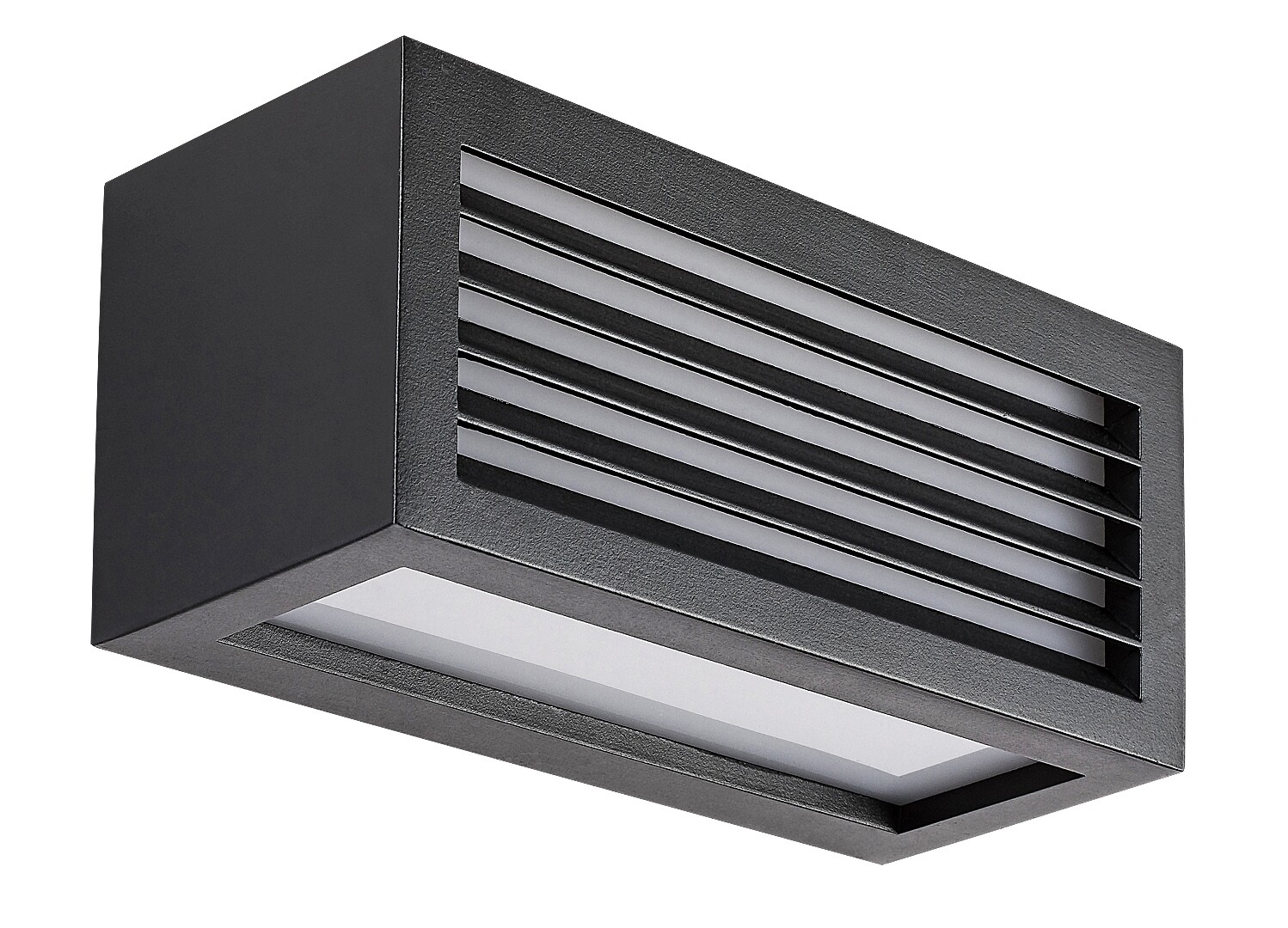 Nowoczesną oprawę ścienną Lublin do zastosowania na zewnątrz polecamy przede wszystkim na taras lub zewnętrzną ścianę domu. Dzięki konstrukcji modelu w kształcie prostopadłościanu światło jest emitowane w kilku kierunkach: w dolnej części oprawy wypływa przez biały klosz z tworzywa sztucznego, podczas gdy w przedniej części wychodzi z wnętrza oprawy w pasmach. Czarna oprawa wykonana z aluminium posiada wbudowane źródło światła LED klasy energetycznej G o mocy 10 W, strumień świetlny z kloszem - 480 lumenów, bez klosza - 1000 lumenów. Trwałość źródła światła wynosi 25.000 godzin. Źródło światło o temperaturze barwowej 4000K świeci naturalnym białym światłem. Wymiary oprawy zewnętrznej są następujące: szerokość 250 mm, wysokość 110 mm, odległość od ściany 100 mm. Oprawa Lublin posiada stopień ochrony IP54, co zapewnia jej ochronę przed pyłem oraz wodą docierającą ze wszystkich kierunków. Idealny zakres temperatury pracy oprawy: –20 °C–40 °C.
