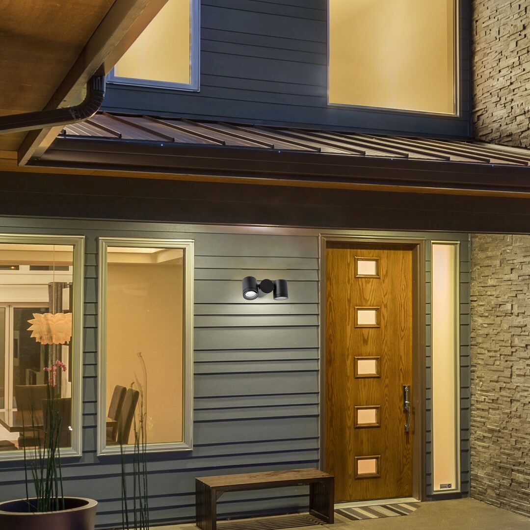 Zewnętrzna podwójna lampa ścienna Rabalux Enol to propozycja dla osób poszukujących nowoczesnego oświetlenia wykonanego z wysokiej jakości materiałów. Lampa ścienna wykonana jest z aluminium w kolorze czarnym, a jej przezroczyste klosze ze szkła dodają elegancji. Cylindryczne głowice lampy, umieszczone po obu stronach cylindrycznej dekoracyjnej podstawy, są obrotowe. Dwupunktowa lampa ścienna to praktyczne rozwiązanie na taras nad drzwiami wejściowymi, ale sprawdzi się także w dowolnym miejscu na zewnętrznej ścianie domu, gdzie potrzebne jest dodatkowe oświetlenie. Model ten jest chroniony przed wnikaniem cząstek stałych o średnicy 1 mm lub większej oraz przed wodą rozpryskiwaną z dowolnego kierunku, dzięki czemu można go bezpiecznie zamontować w mniej osłoniętych przed deszczem miejscach. Nowoczesna lampa ścienna może być używana z dwiema żarówkami, każda o mocy do 35 W. Typ gniazda to GU10. Produkt dostarczany jest bez źródeł światła.