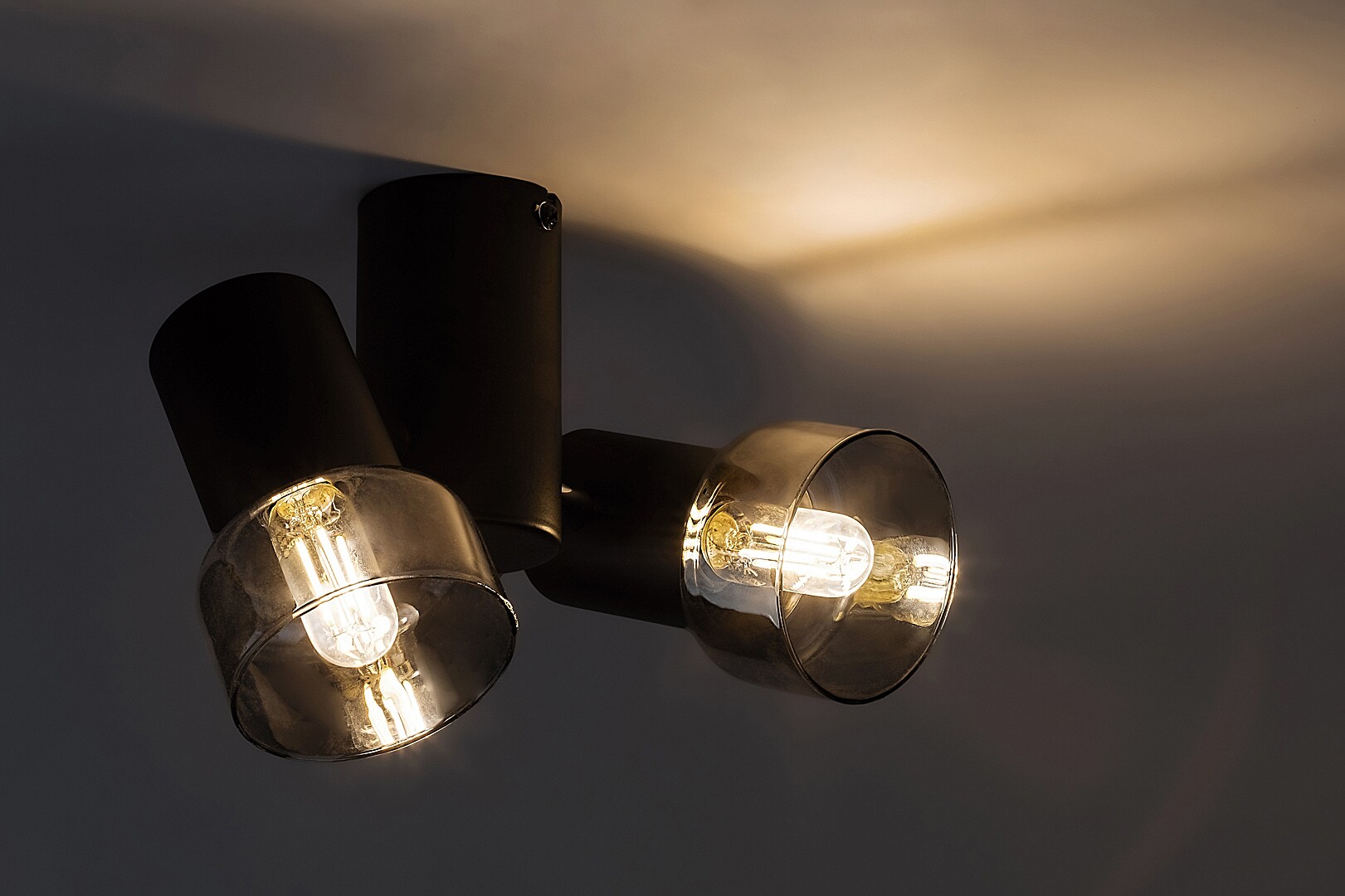 Lampa sufitowa Rabalux Hatice z dwoma żarówkami jest polecana dla osób, które lubią modele łączące funkcjonalność z minimalistycznym stylem. Lampa składa się z cylindrycznych kształtów, wykonanych z metalu w eleganckim czarnym kolorze i uzupełnionych kloszami z dymionego szkła. Główki lamp skierowane w dół są przymocowane po przeciwnych stronach cylindrycznej dekoracyjnej podstawy, tworząc symetrię lampy. Ponieważ główki lamp mogą być obracane, ich światło można skierować według własnych upodobań w pomieszczeniu. Lampa może być używana z dwoma żarówkami, każda o mocy do 15 W. Typ gniazda to E14. Lampa sufitowa z dwoma żarówkami jest idealnym wyborem do salonu, sypialni lub pracowni. Ten model jest dostarczany bez źródeł światła.