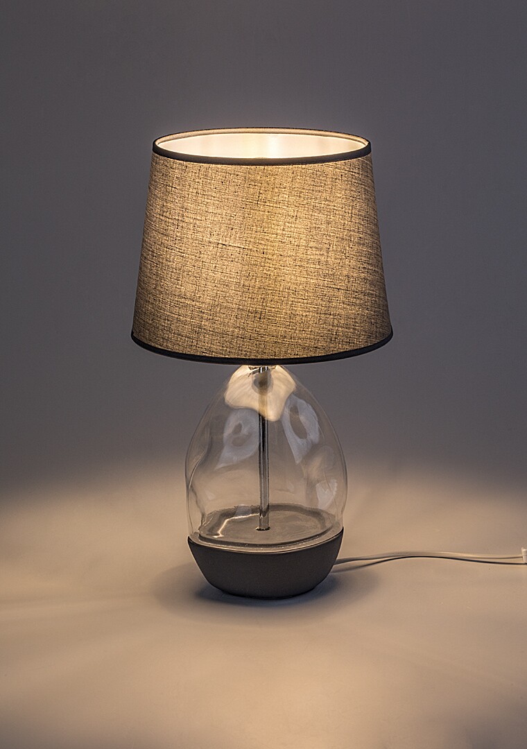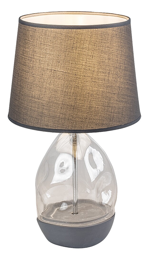Lampa stołowa Rabalux Apolonia jest polecana dla osób, które szukają wyjątkowej, przyciągającej wzrok lampy uzupełniającej. Korpus tej lampy designerskiej jest wykonany z przezroczystego szkła o nieregularnej powierzchni i szarej ceramiki, a abażur z szarego materiału tekstylnego. Abażur lekko rozszerza się ku dołowi, a jego ciemny kolor filtruje światło z żarówki. Lampa stołowa jest idealnym wyborem do salonu lub stolika nocnego w sypialni, gdzie może również pełnić rolę elementu dekoracyjnego. W zależności od preferencji, można wybrać żarówkę emitującą ciepłe lub naturalne białe światło. Lampa jest obsługiwana za pomocą przełącznika na kablu i może być używana z jedną żarówką o mocy do 40 W. Typ gniazda to E27. Lampka nocna jest dostarczana bez źródła światła.