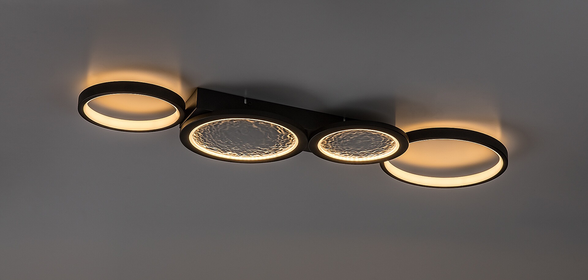 Lampa sufitowa Rabalux Aranis polecana jest osobom poszukującym spektakularnej lampy sufitowej o szerokiej funkcjonalności do nowoczesnego domu. Model ten składa się z okrągłych kształtów o różnych rozmiarach, z których dwa mają interesującą teksturę wewnątrz, przypominającą powierzchnię księżyca. Oprawa wykonana jest z metalu w kolorze czarnym, a klosz z tworzywa sztucznego jest biały. Dekoracyjna podstawa ma kształt kwadratu. Lampa wyposażona jest w wbudowane źródło światła LED, którego temperaturę barwową można regulować za pomocą pilota lub przełącznika ściennego. Można również regulować jasność, a dodatkowo do dyspozycji są funkcje pamięci, timera oraz trybu nocnego – wszystkie obsługiwane za pomocą pilota. Lampa doskonale nadaje się do większych salonów, jadalni lub sypialni. Charakteryzuje się energooszczędnym działaniem i długą żywotnością.