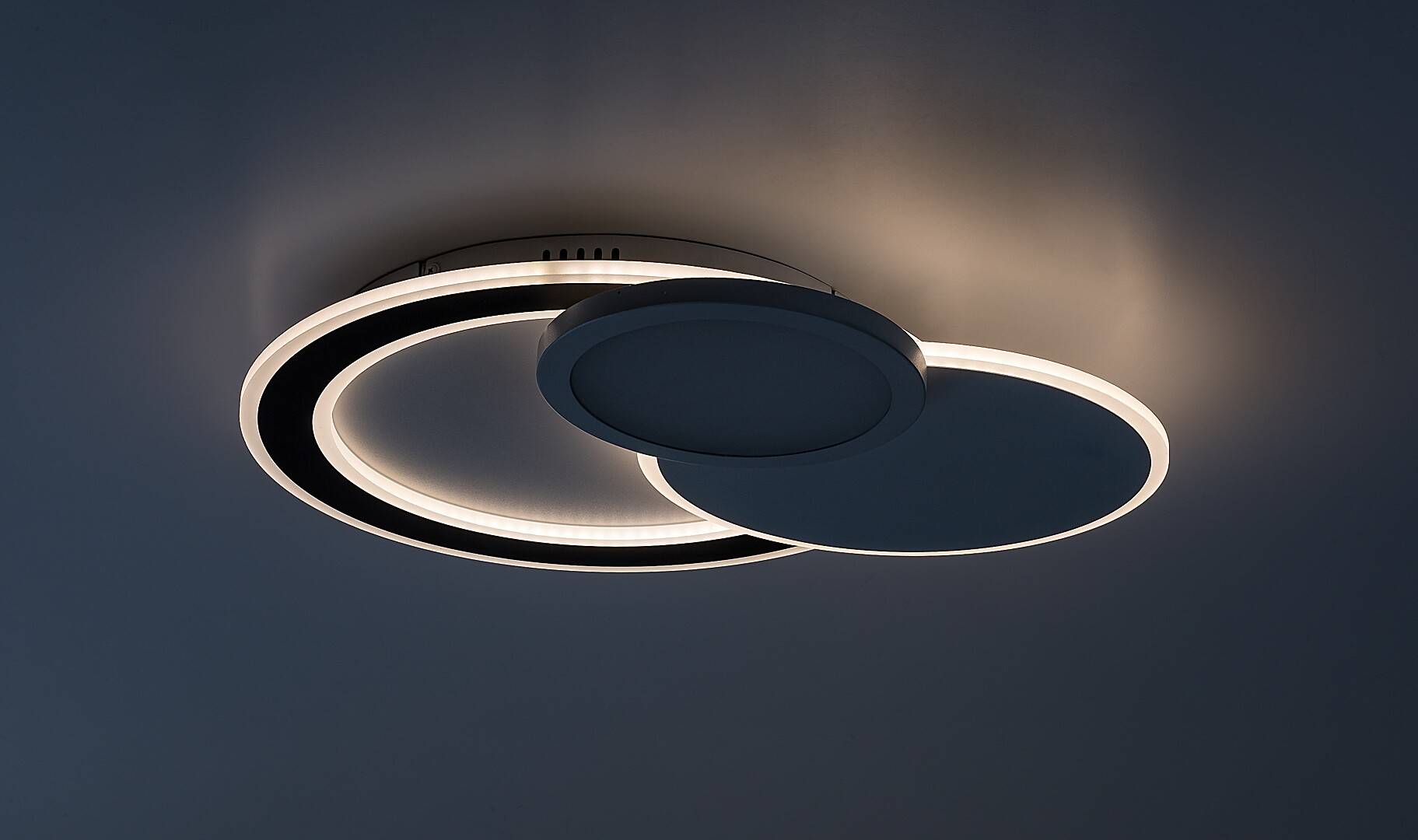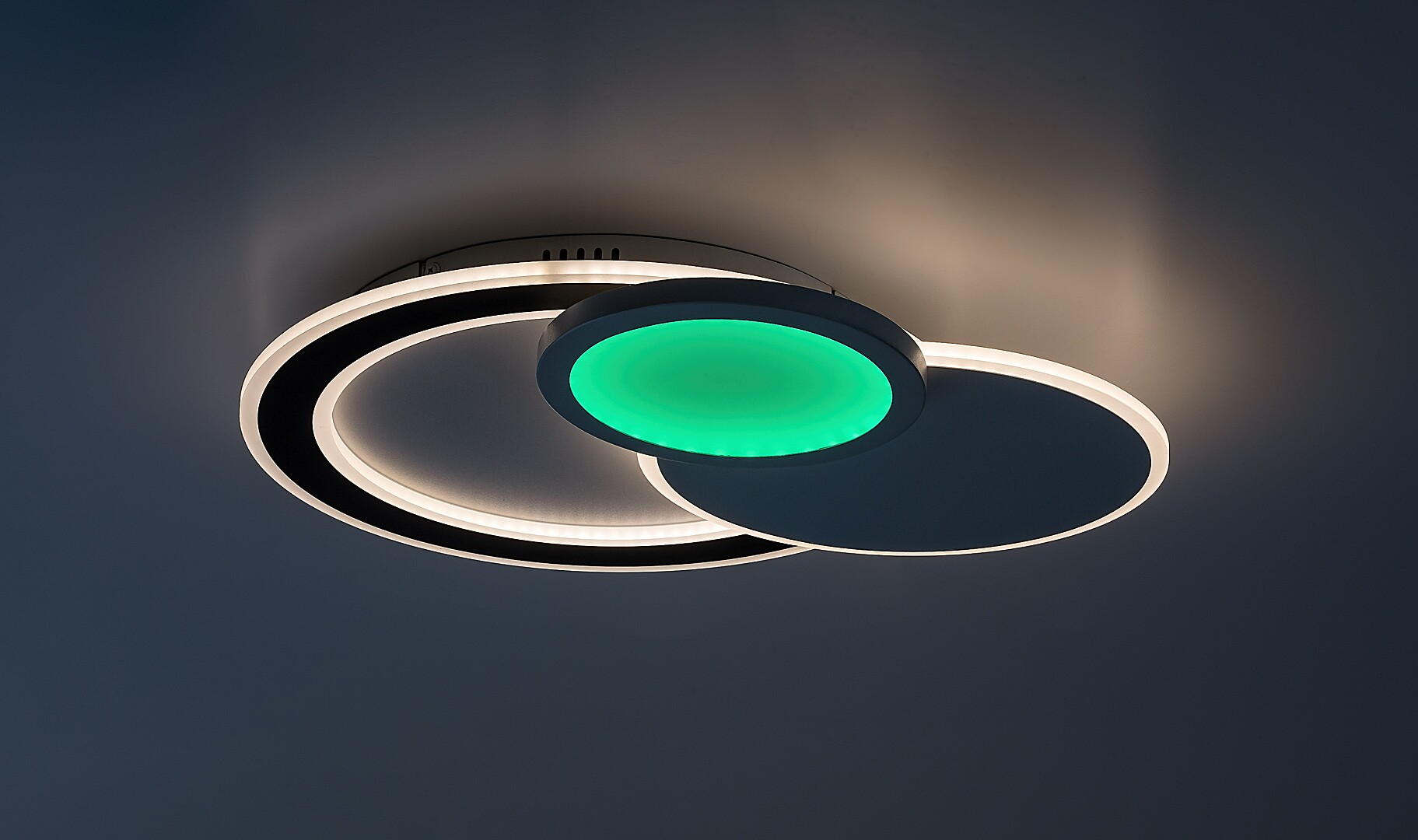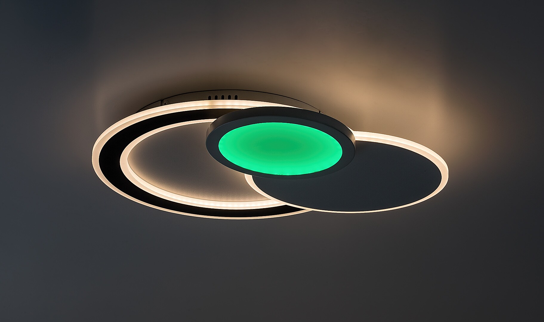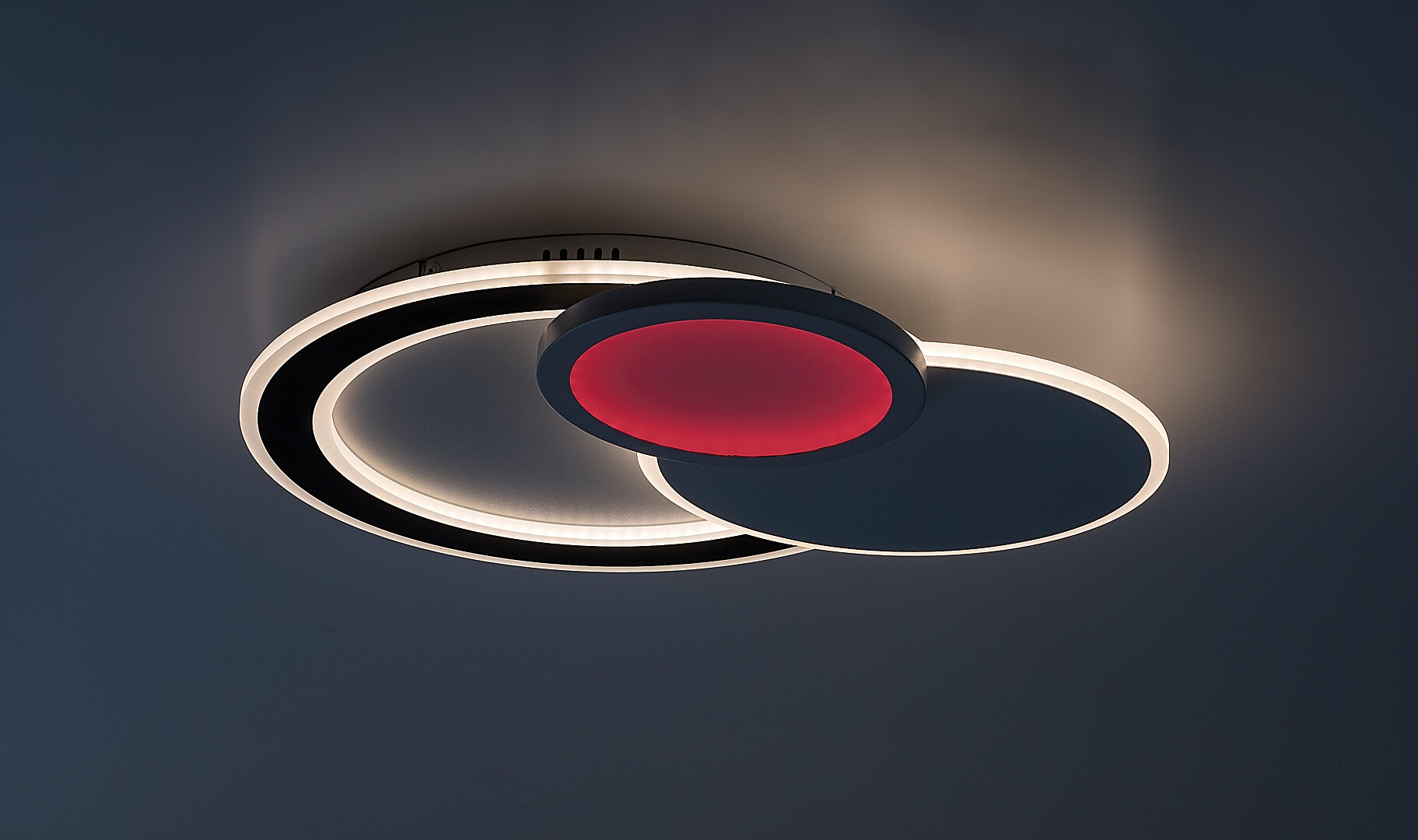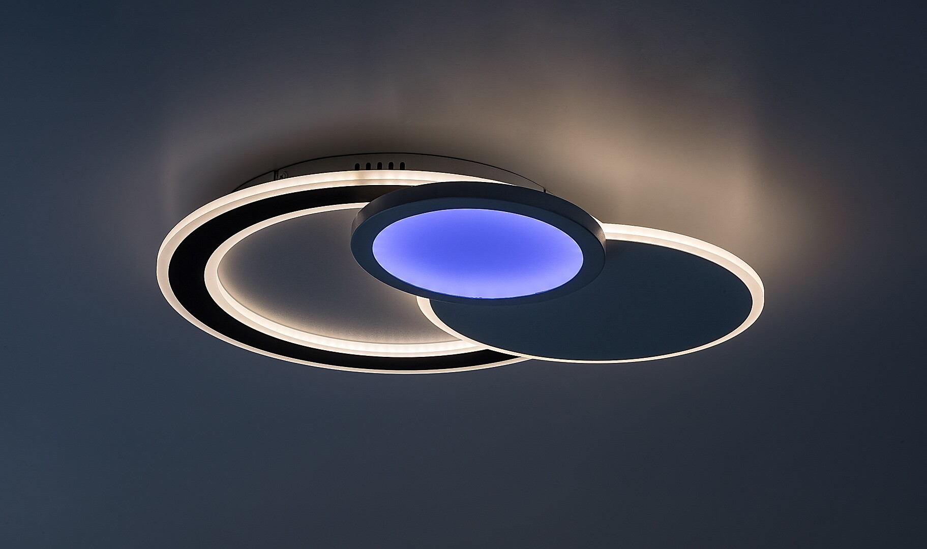 Lampa sufitowa Rábalux Stavros jest polecana tym, którzy cenią sobie zarówno kreatywny design, jak i inteligentne funkcje. Lampa LED wykonana jest z metalu w kolorze czarnym i posiada biały klosz z tworzywa sztucznego. Składa się z trzech częściowo zachodzących na siebie okrągłych elementów o różnych rozmiarach. Lampa posiada wbudowane źródło światła LED, które gwarantuje energooszczędne działanie i długą żywotność. Temperaturę barwową światła można regulować za pomocą pilota lub włącznika ściennego. Dostępne jest również oświetlenie RGB, które znajduje się na powierzchni najmniejszego, centralnego elementu lampy. Jasność światła można regulować, a funkcja pamięci umożliwia zapamiętanie ustawień – obie funkcje obsługiwane są za pomocą pilota. Intensywność światła lampy pozwala na skuteczne oświetlenie większego pomieszczenia. To idealny wybór do salonu, jadalni lub sypialni.