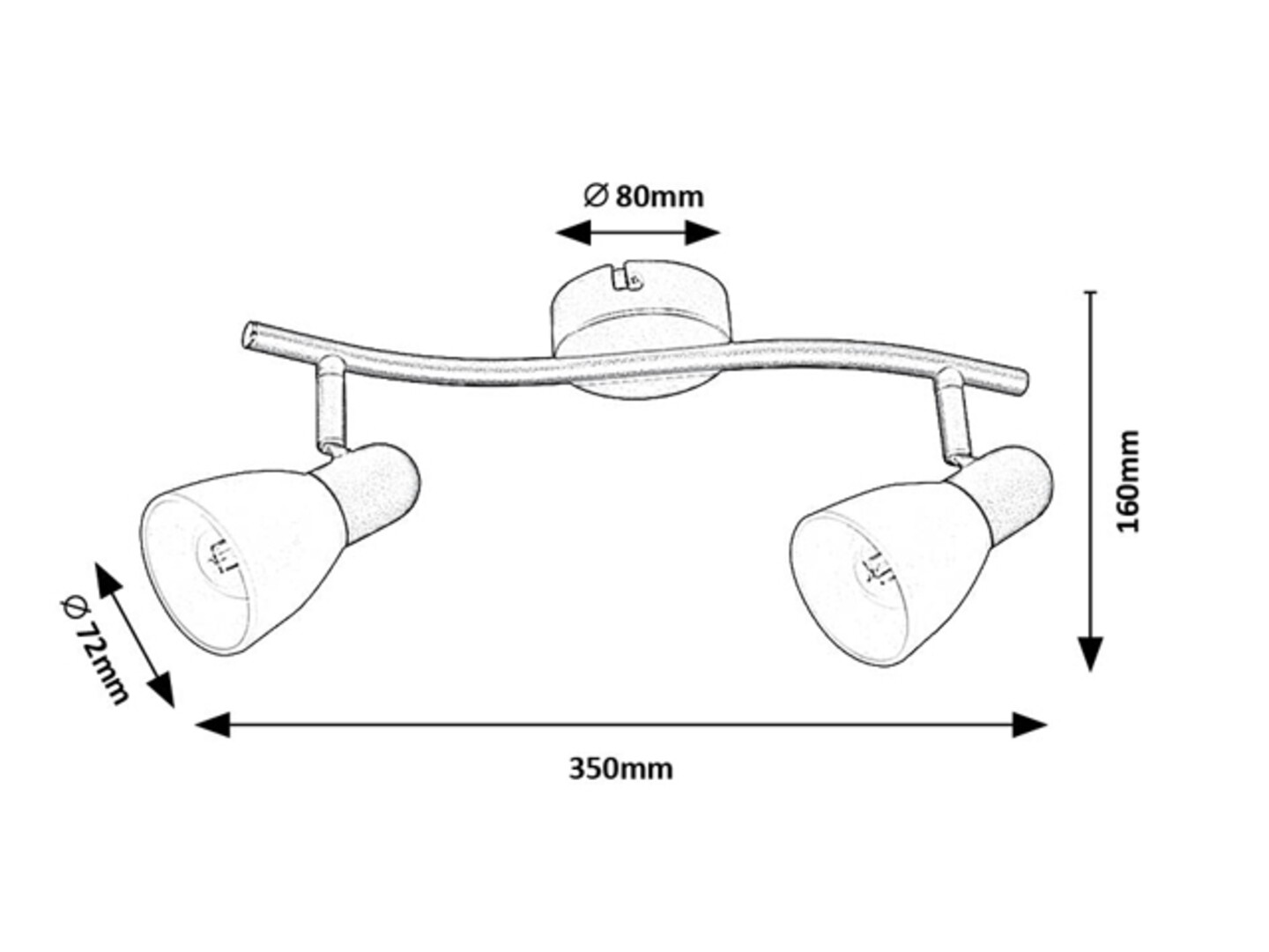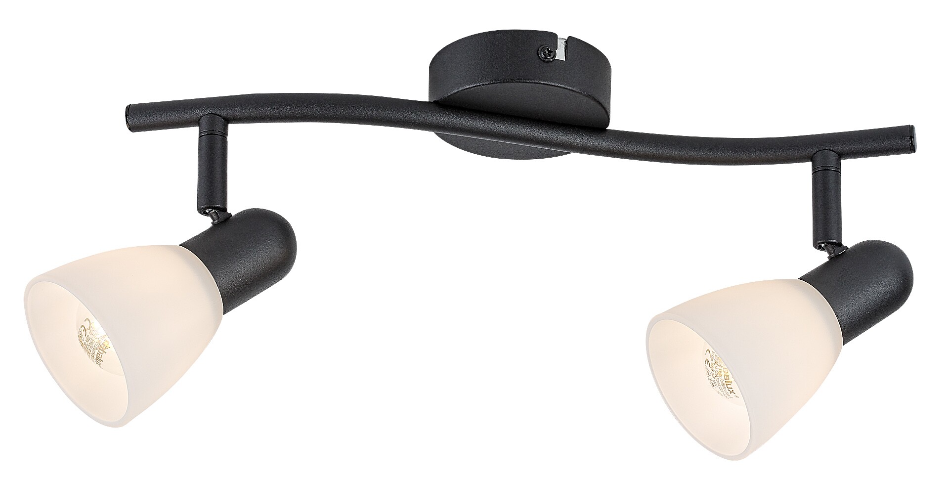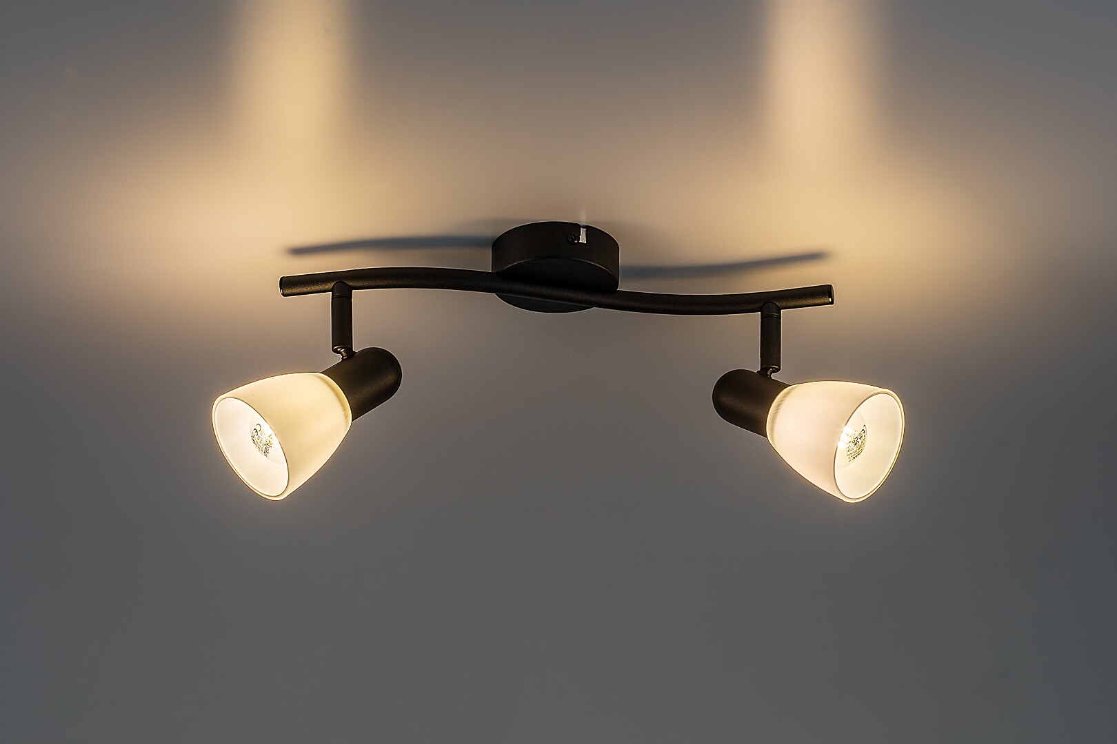 Lampa sufitowa punktowa Rabalux Soma z 2 źródłami światła polecana jest osobom, które preferują ruchome lampy zapewniające skoncentrowane oświetlenie zamiast światła rozproszonego. Ten elegancki model doskonale sprawdzi się w salonie, jadalni, przedpokoju lub sypialni. Lampa punktowa wykonana jest z metalu – posiada czarną oprawę oraz białe, szklane klosze w kształcie litery A. Może być zamocowana do sufitu za pomocą małej, okrągłej podstawy dekoracyjnej. Głowice lamp przymocowane są do wygiętego ramienia wspornikowego, które z kolei łączy się z podstawą dekoracyjną – dzięki zastosowanemu przegubowi kulowemu każdą głowicę można ustawić indywidualnie i skierować światło według własnych potrzeb. Lampa dwupunktowa przystosowana jest do dwóch żarówek o mocy do 40 W każda. Typ trzonka: E14. Model dostarczany jest bez źródeł światła.