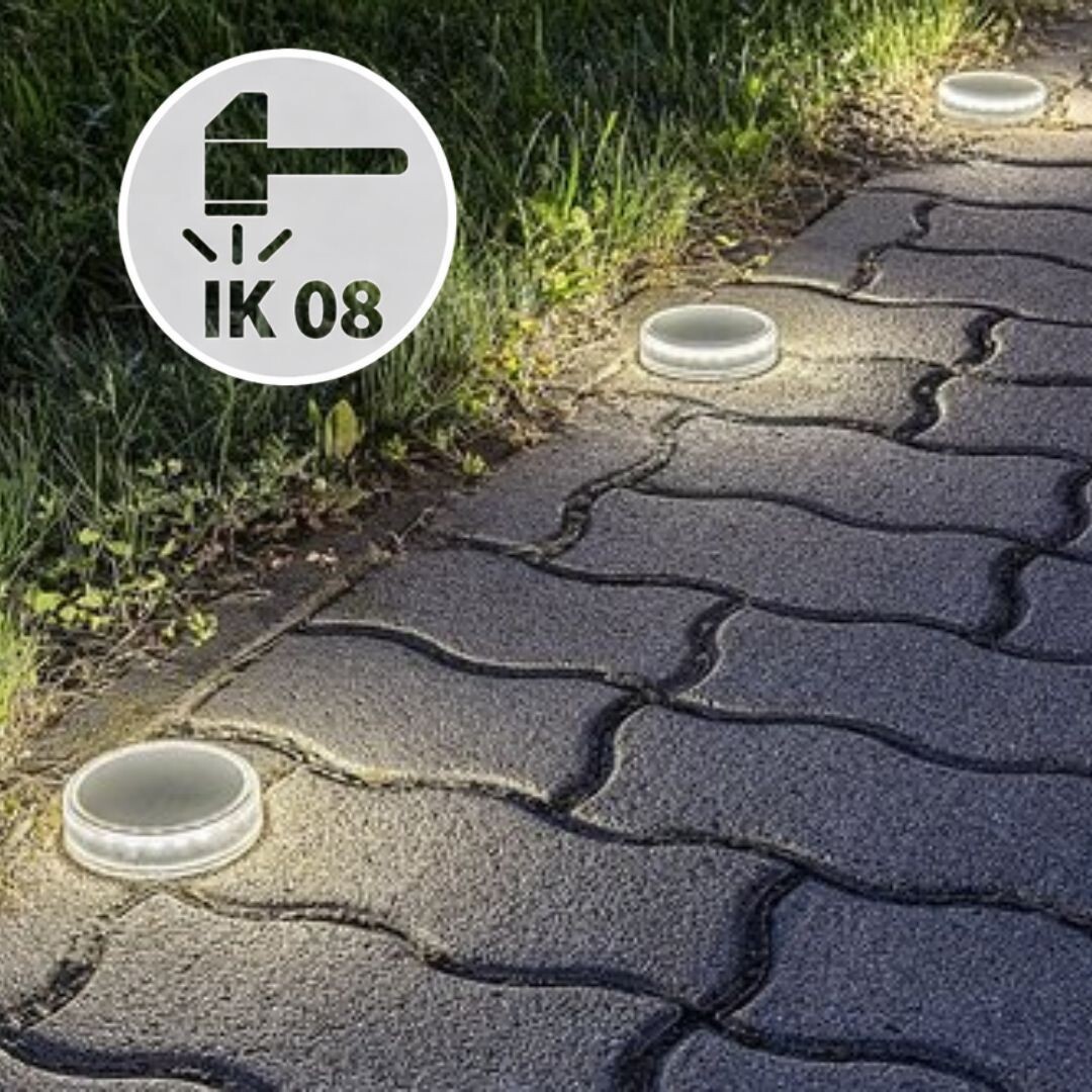 Lampa solarna Rábalux Trillo to zrównoważone i wyjątkowo trwałe rozwiązanie do ogrodów, wzdłuż chodników i ścieżek. Ten niewielki model wbudowany w podłoże zawiera zintegrowane źródło światła LED i czujnik zmierzchu, dzięki czemu automatycznie włącza się po zmroku, emitując naturalne białe światło. Lampa ma najwyższy poziom ochrony przed pyłem i wodą oraz posiada klasę odporności na uderzenia IK08, co oznacza, że wytrzymuje mechaniczne uderzenia o sile do 5 dżuli, zapewniając zwiększoną odporność. Wbudowana bateria ładuje się w około 10 godzin i może działać do 12 godzin na jednym ładowaniu, a technologia LED gwarantuje długą żywotność.